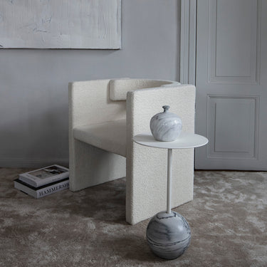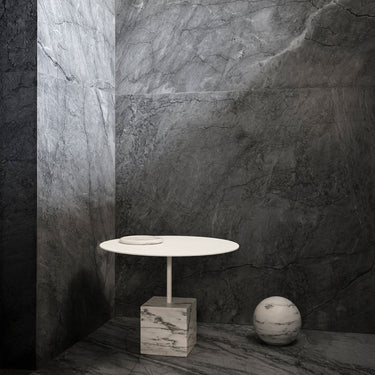 Friends & Founders udvælger europæisk marmor med stor omhu. Hver plade har sin egen identitet — fra komplekse årer til rolige, ensartede mønstre. Den silkebløde matte finish fremhæver stenens naturlige struktur og lader overfladen patinere smukt over tid. Variationer i markeringer eller små uregelmæssigheder er en del af materialets autenticitet og bidrager til bordets unikke udtryk.