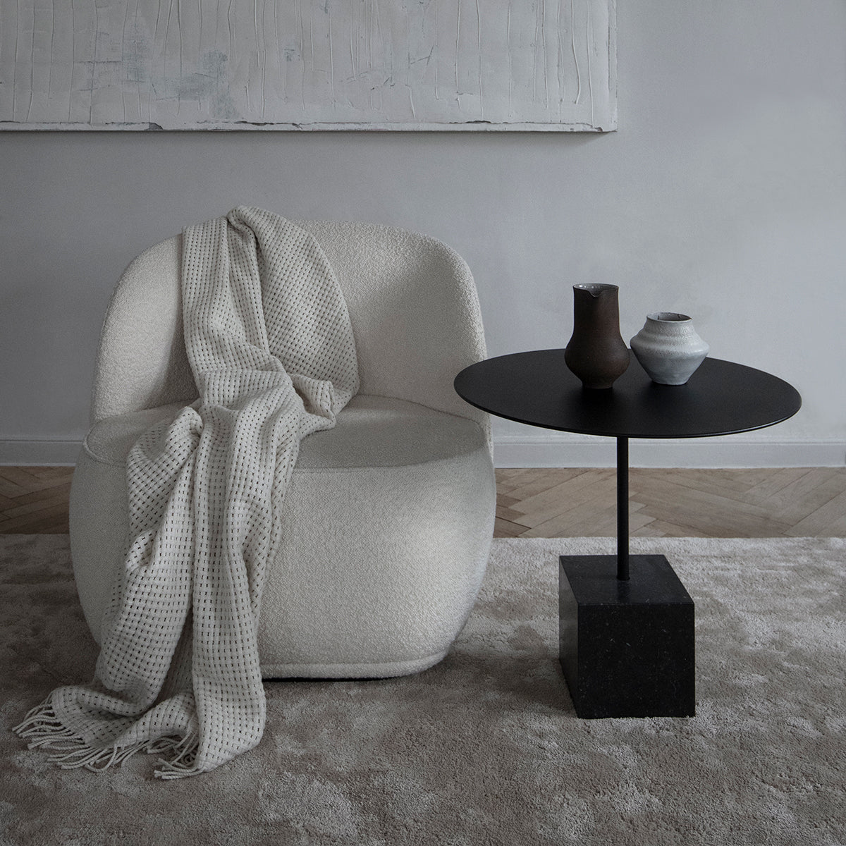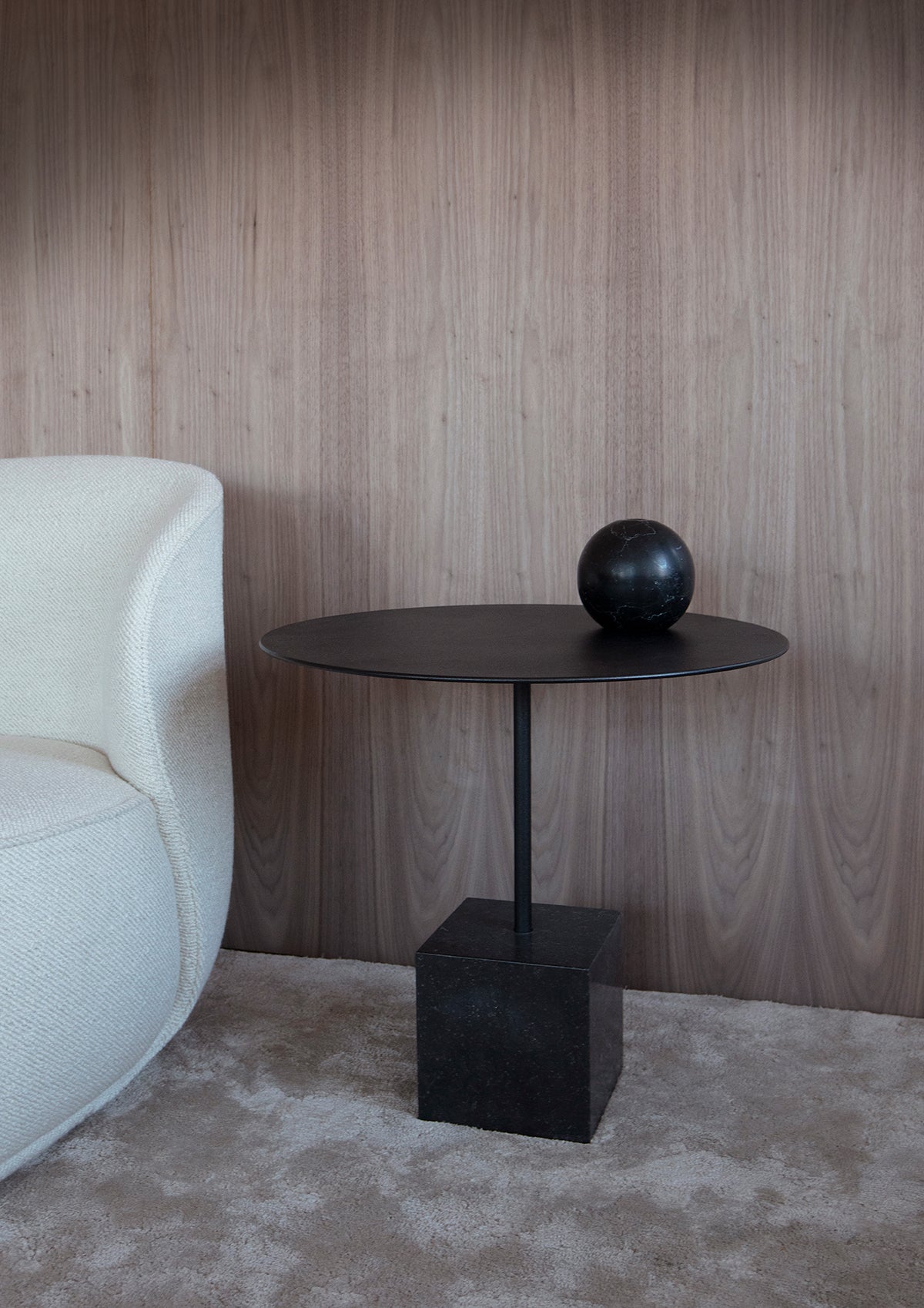 KNOCKOUT DINING er en videreudvikling af den prisbelønnede KNOCKOUT Lounge-serie. Bordet kombinerer en arkitektonisk, nutidig profil med et elegant minimalistisk udtryk, der bryder med traditionen. Den monokrome komposition i sort eller hvid marmor møder en solid metalbase, med mulighed for eksklusive kromdetaljer — et møbel med tydelig karakter og grafisk styrke.