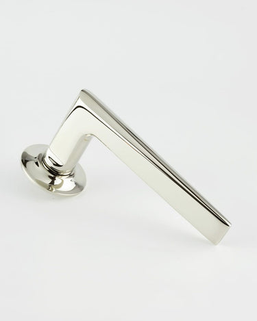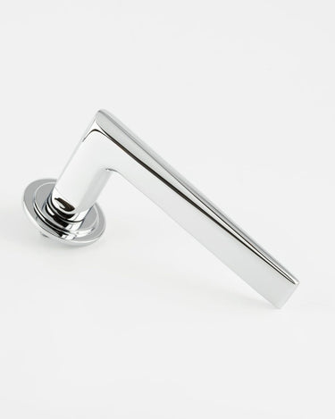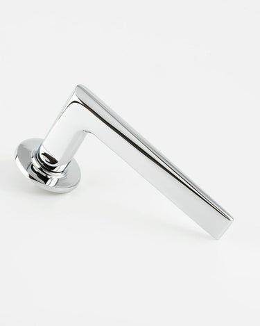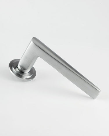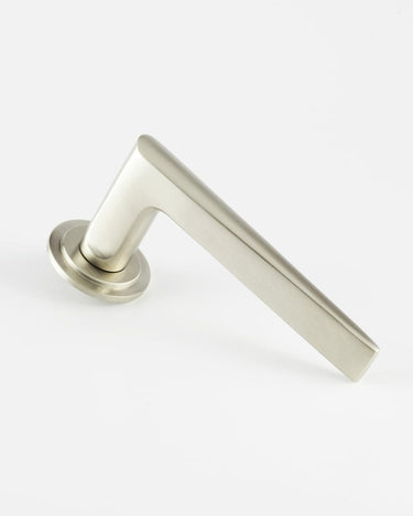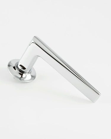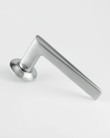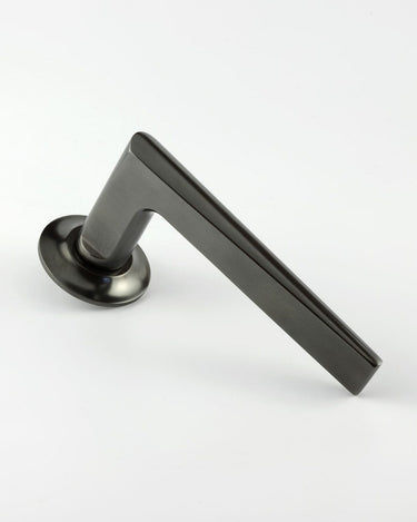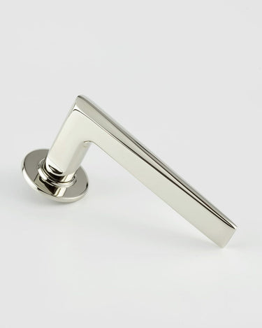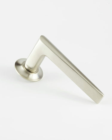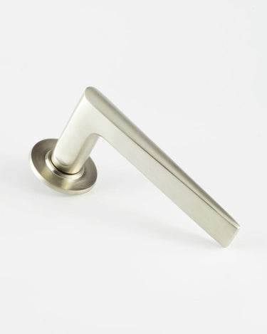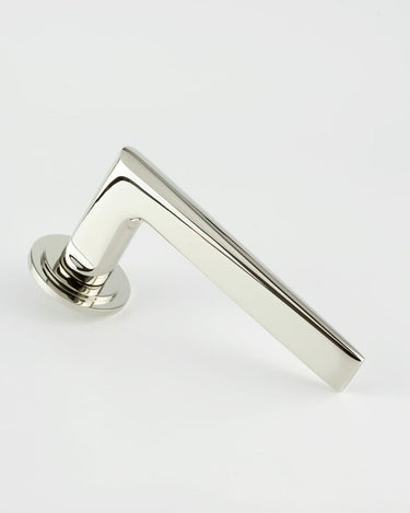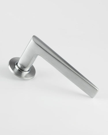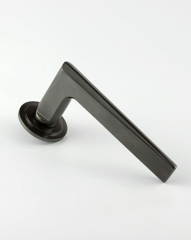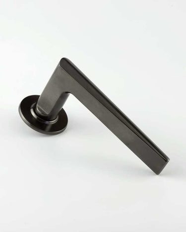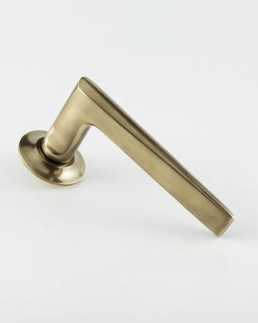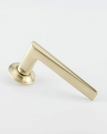 Et kileformet dørgreb på roset, udført i massiv messing. Den minimalistiske wedge-profil giver et præcist og arkitektonisk greb, der føles stabilt i hånden og tilfører døren et elegant, grafisk udtryk. Designet forener funktionalitet med en rolig, moderne æstetik.