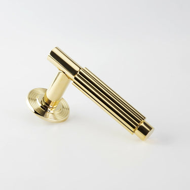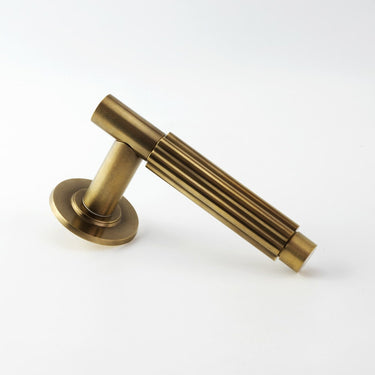 Specification: Solid brass Lever on un-sprung rose. Fits door thickness of 35-54mm door 38mm Latch bolt centres