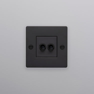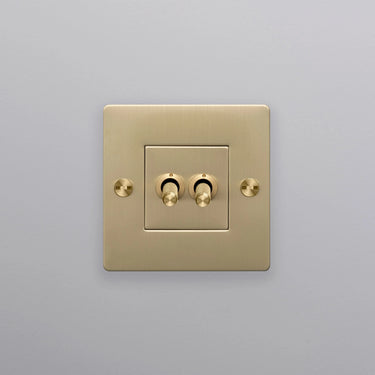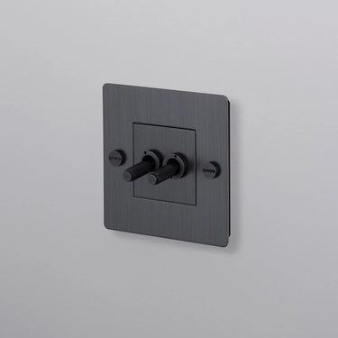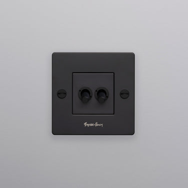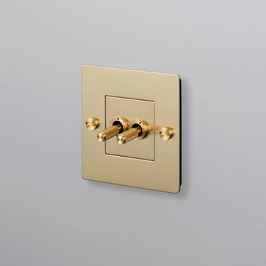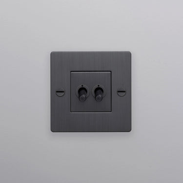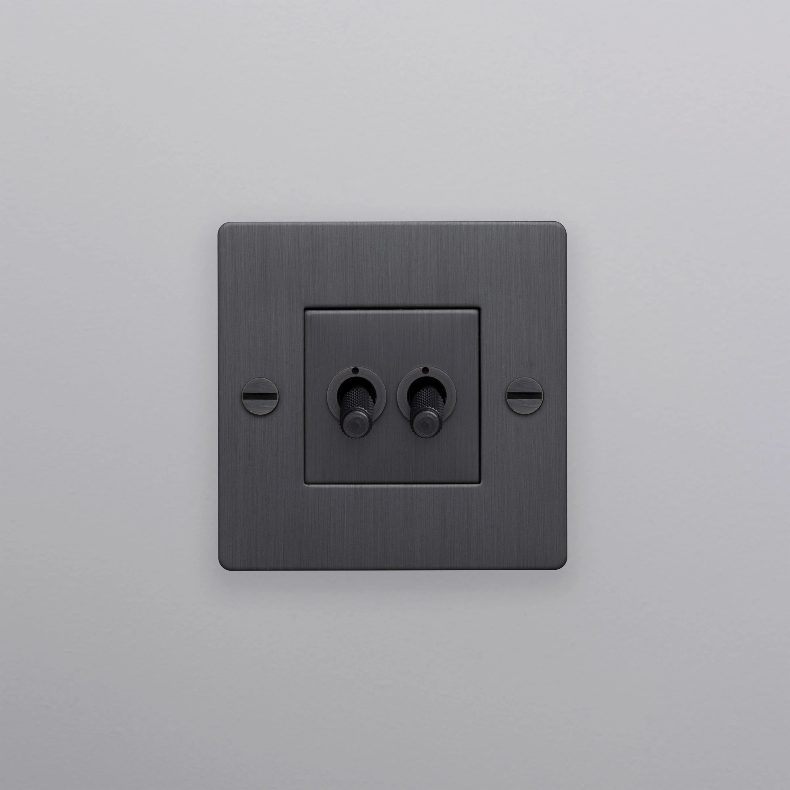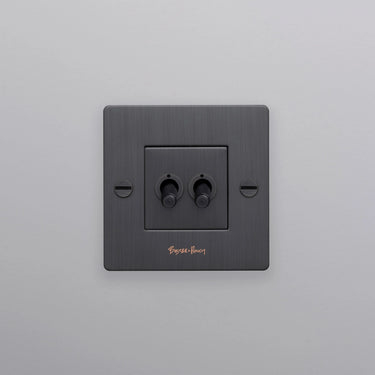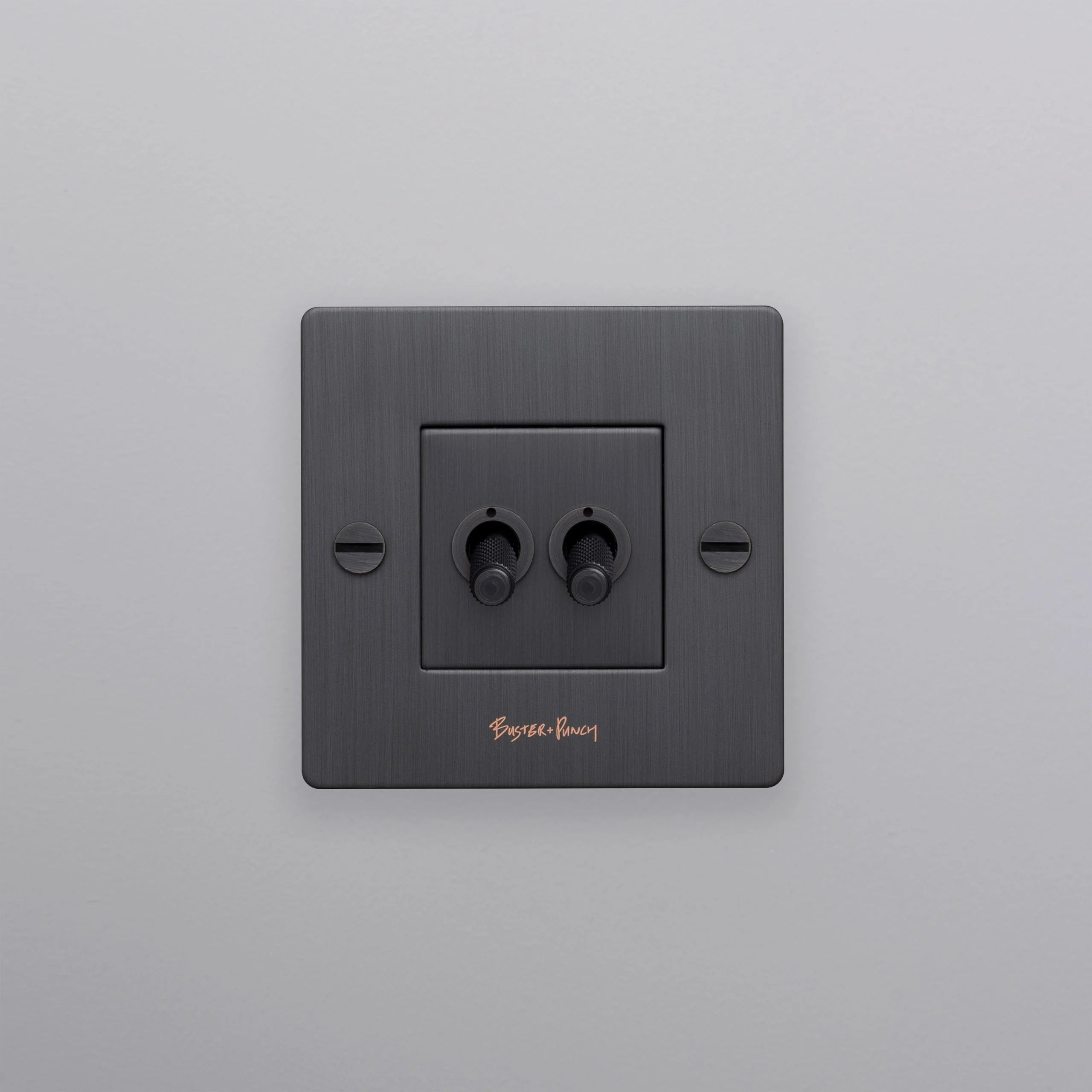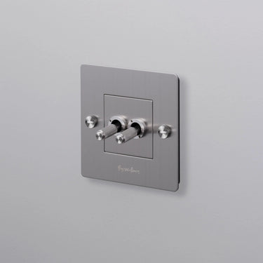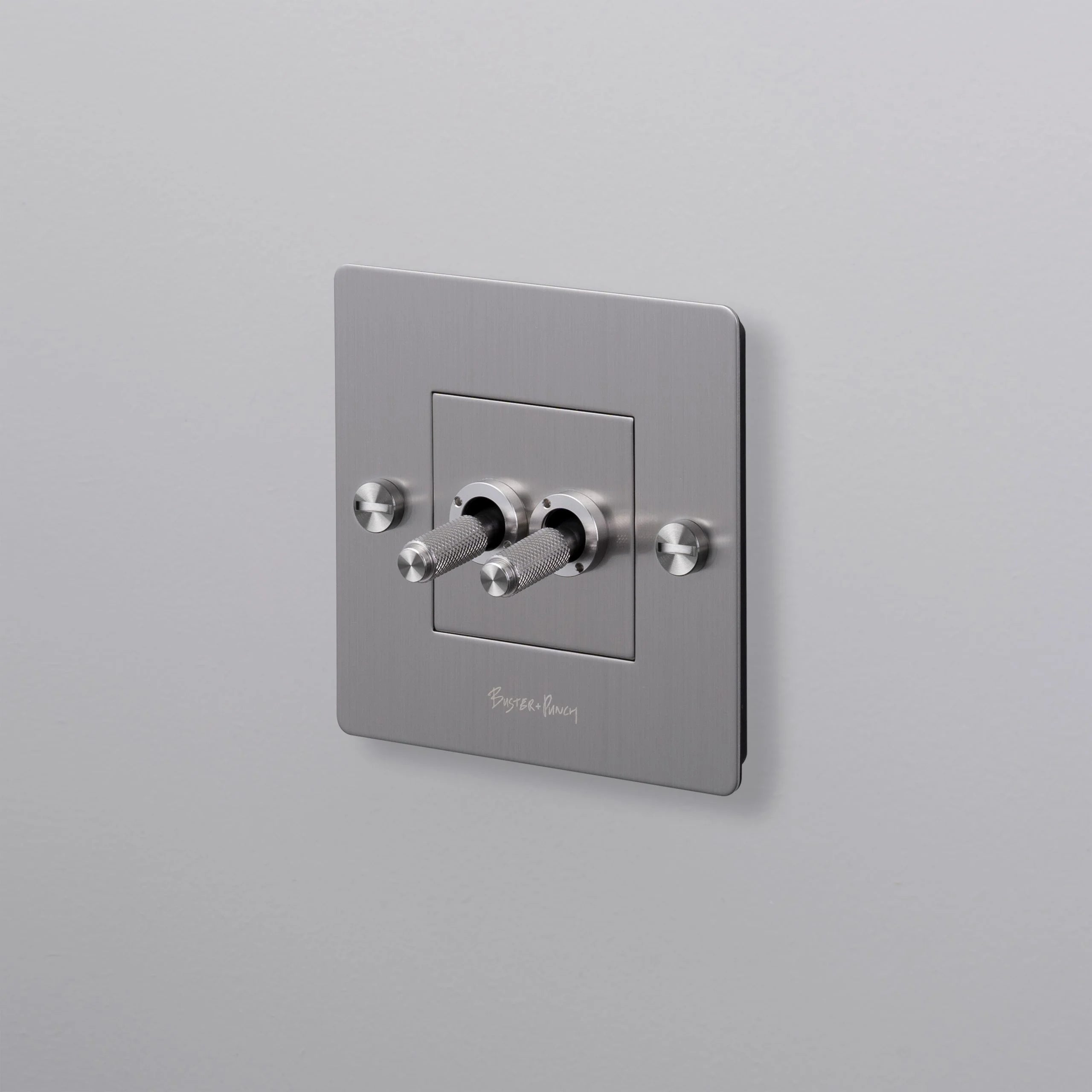 En 2G vippekontakt. Vippekontakten er lavet af solidt metal og har Buster + Punch karakteristiske finesser. Denne kontakt er en 2-vejs model.