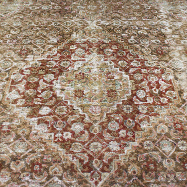 The colors are in soft red, natural beige and green tones, which underlines the difference in pile height and makes the pattern of the Blush Vintage carpet appear like powdery moss."