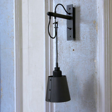 Tilføj et stilfuldt touch til dit rum med vores væglampe, fremstillet af graphit Eller Nude pulverlakeret metal og udstyret med solid bruneret messing detaljer. Lampen har vores signatur solid messing, kryds-krøllede pendel med mat sort gummi detaljer. En solid messing krog gør det muligt at hænge pendlen på lampen, så du nemt kan justere kabellængden.