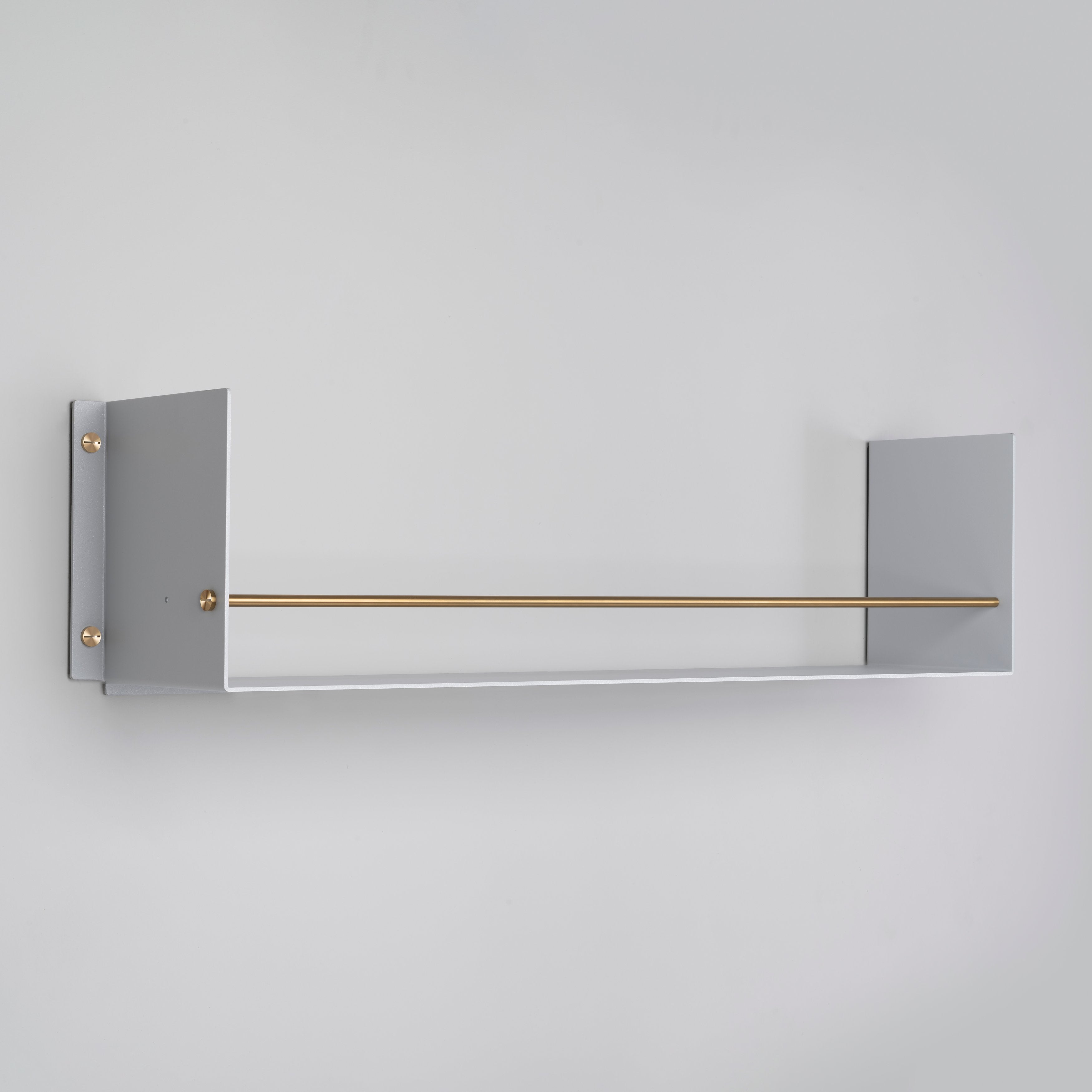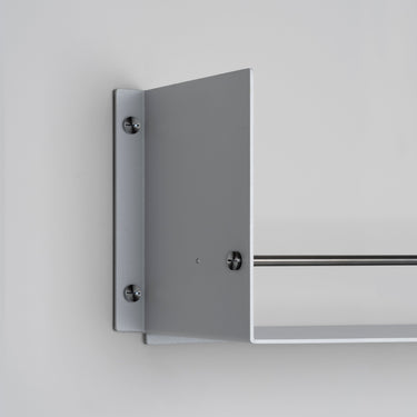 Denne hylde er lavet af solidt, pulverlakeret metal og har omhyggeligt udformede metaldetaljer. Den holdbare hylde er fremstillet af 4 mm laserskåret aluminiumsplade, som er presset og pulverlakeret for at sikre langvarig styrke og holdbarhed. For at sikre dine ejendele er på plads, er hylden udstyret med et 12 mm håndpoleret solidt metalbeslag, der er poleret i hånden, samt matchende metal skruer.