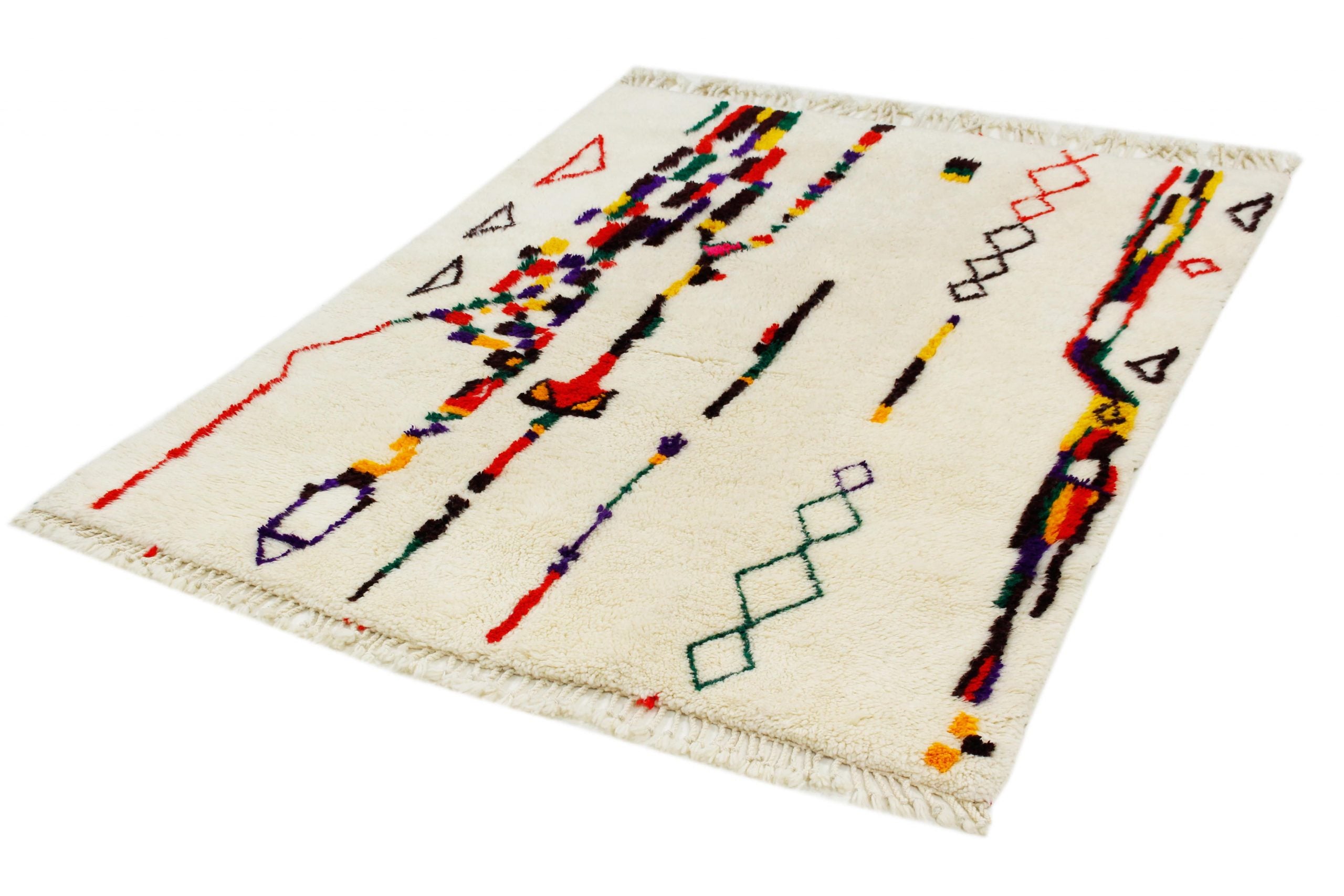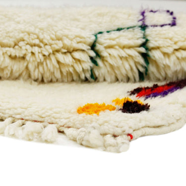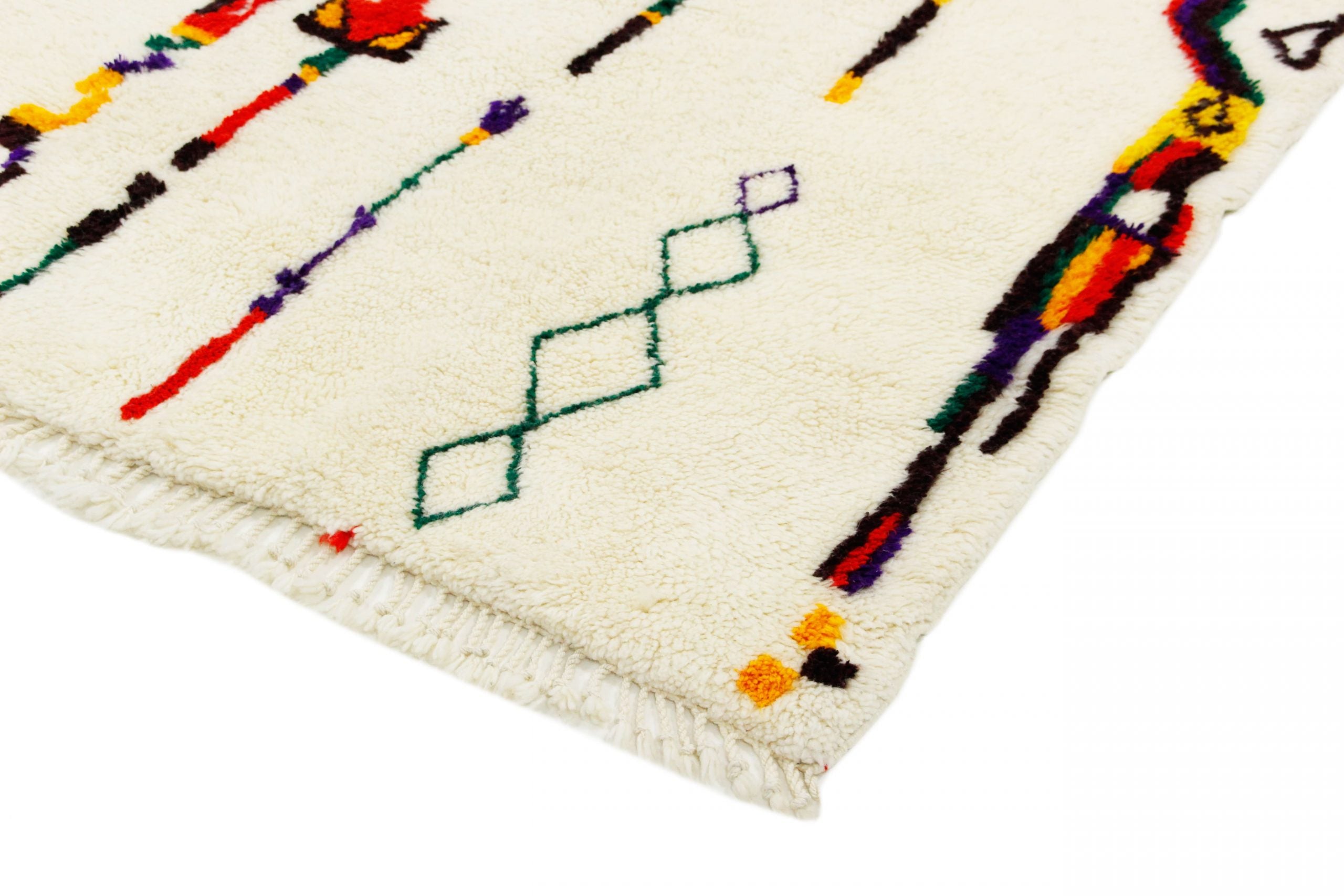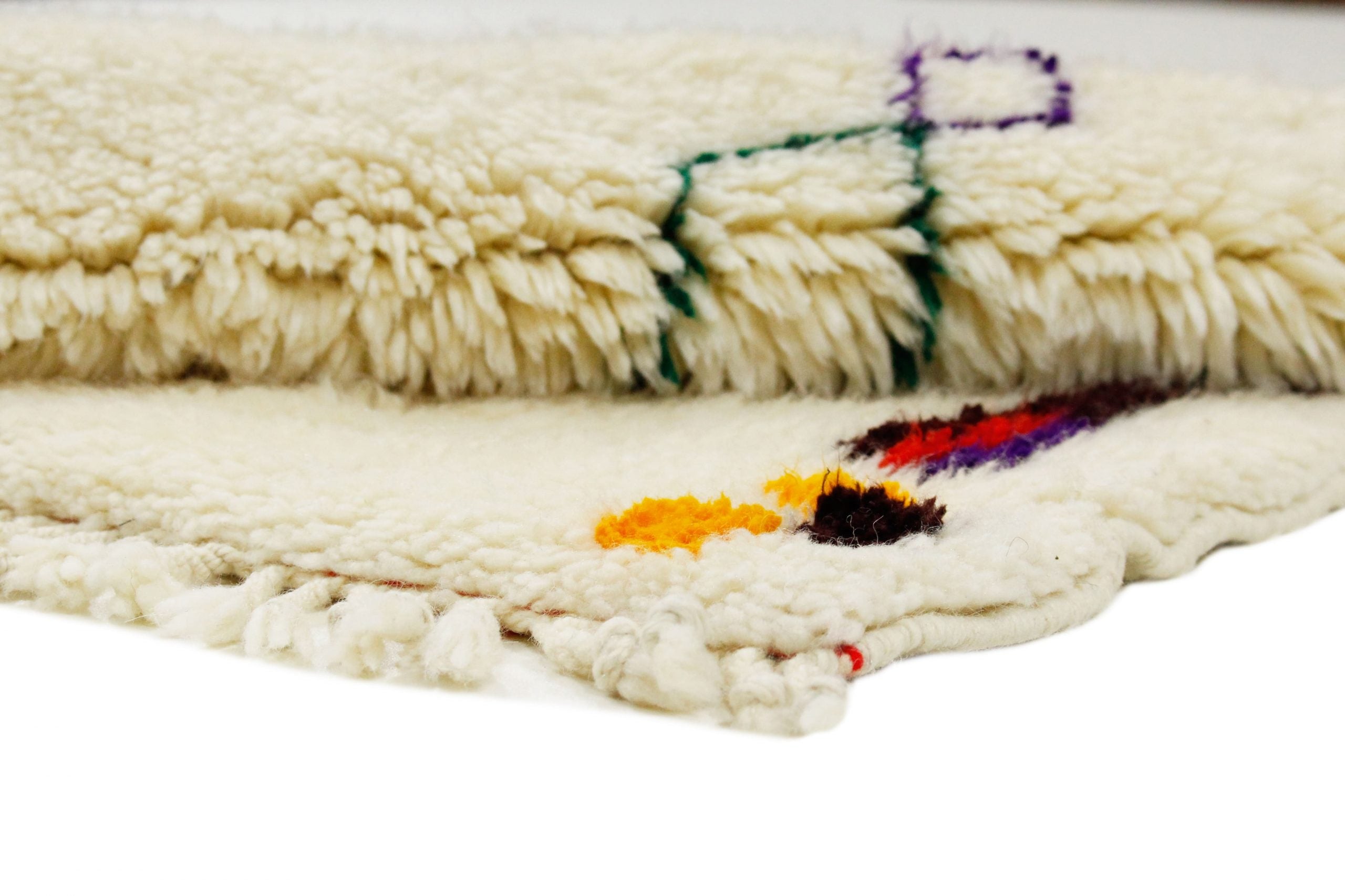 Due to the manual production, a natural layer of fat remains on the fibers when the wool is washed, which makes the carpet self-cleaning, so to speak. As is typical for most Berber carpets, this Beni Ourain also has only one-sided fringes and a narrow kilim beam on the broad sides.