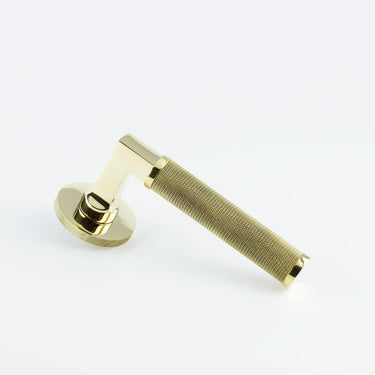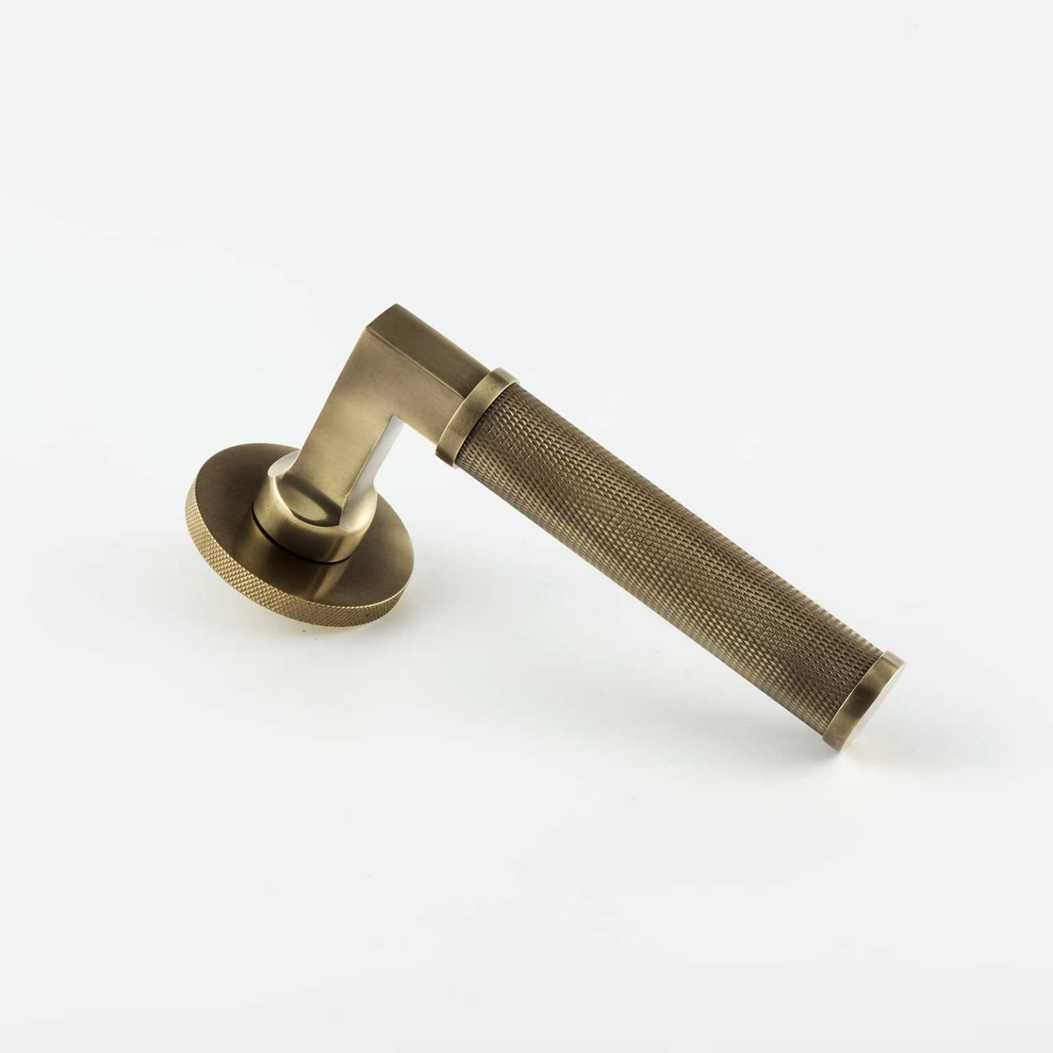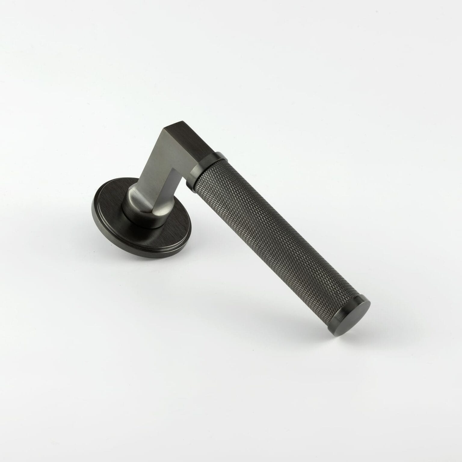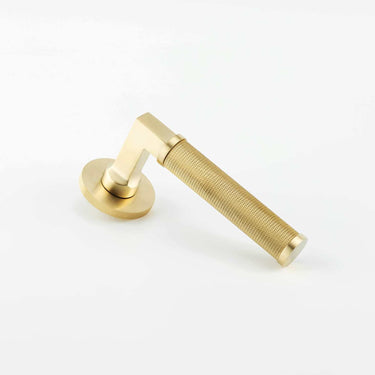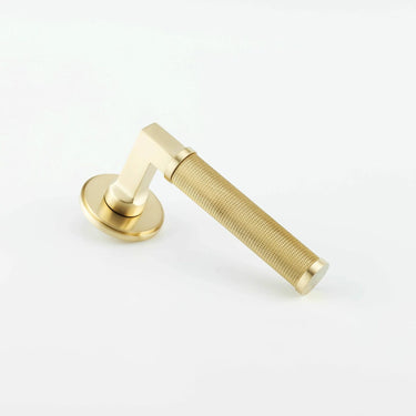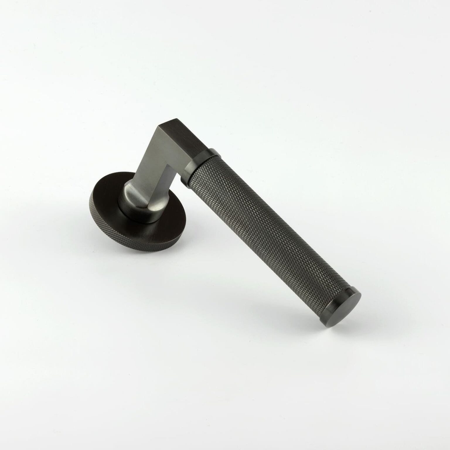Bauhaus-themed lever on rose with the knurled handle section, solid brass material