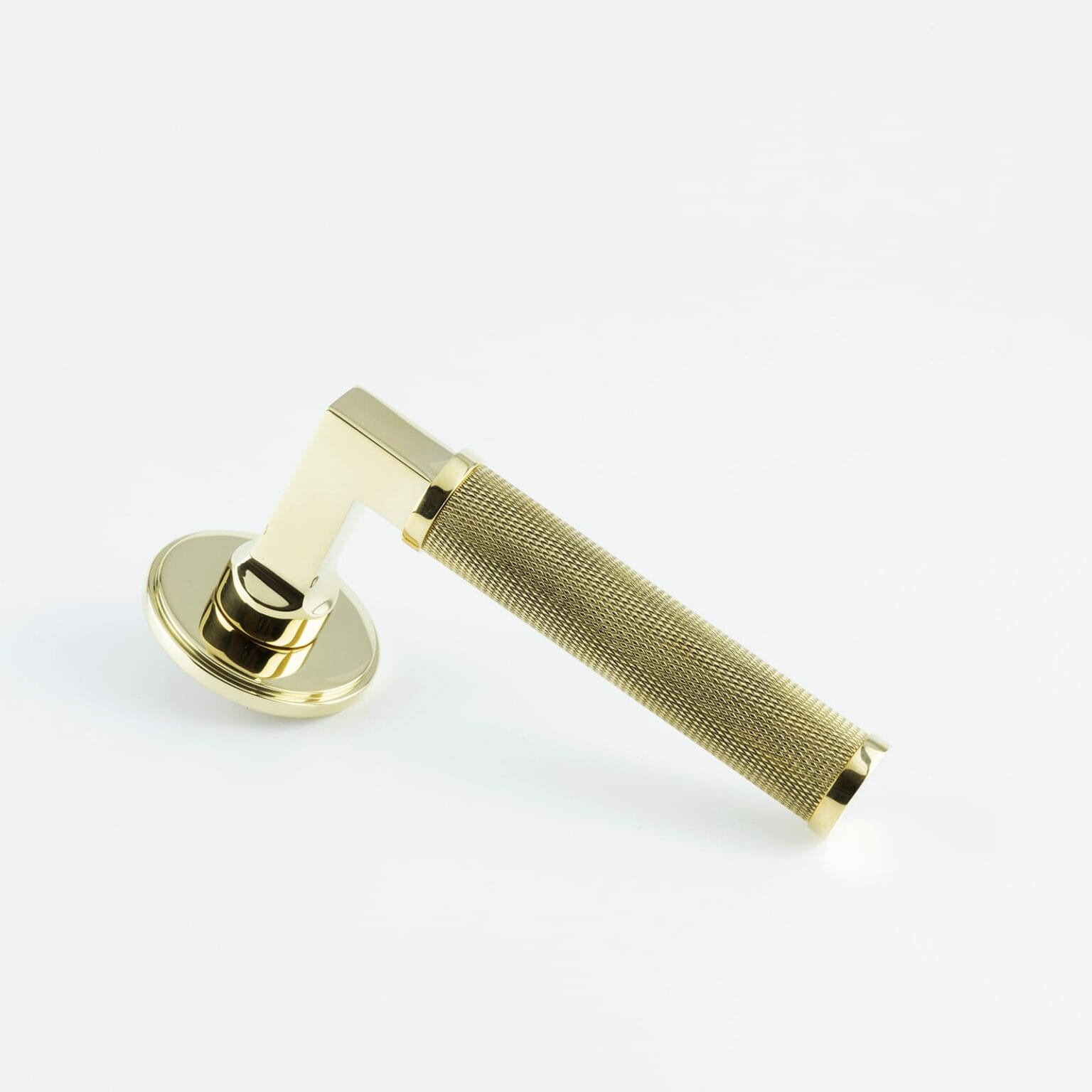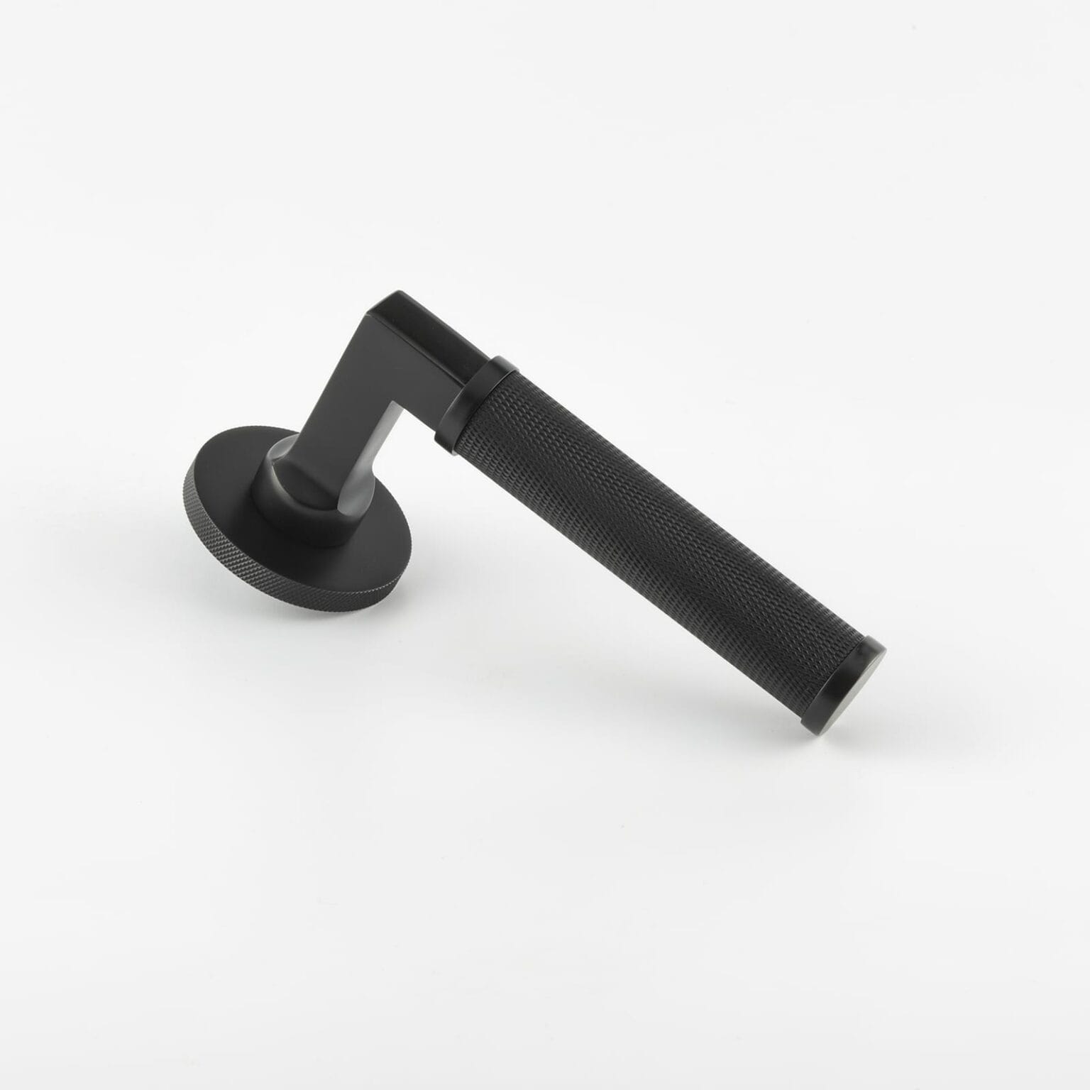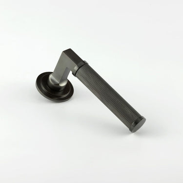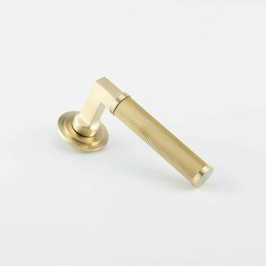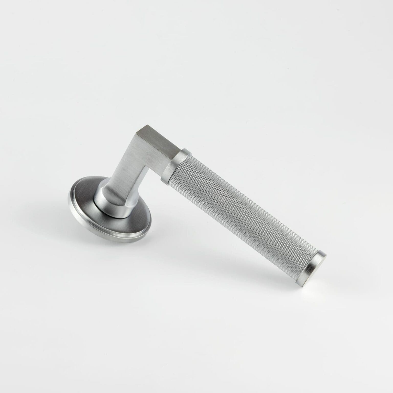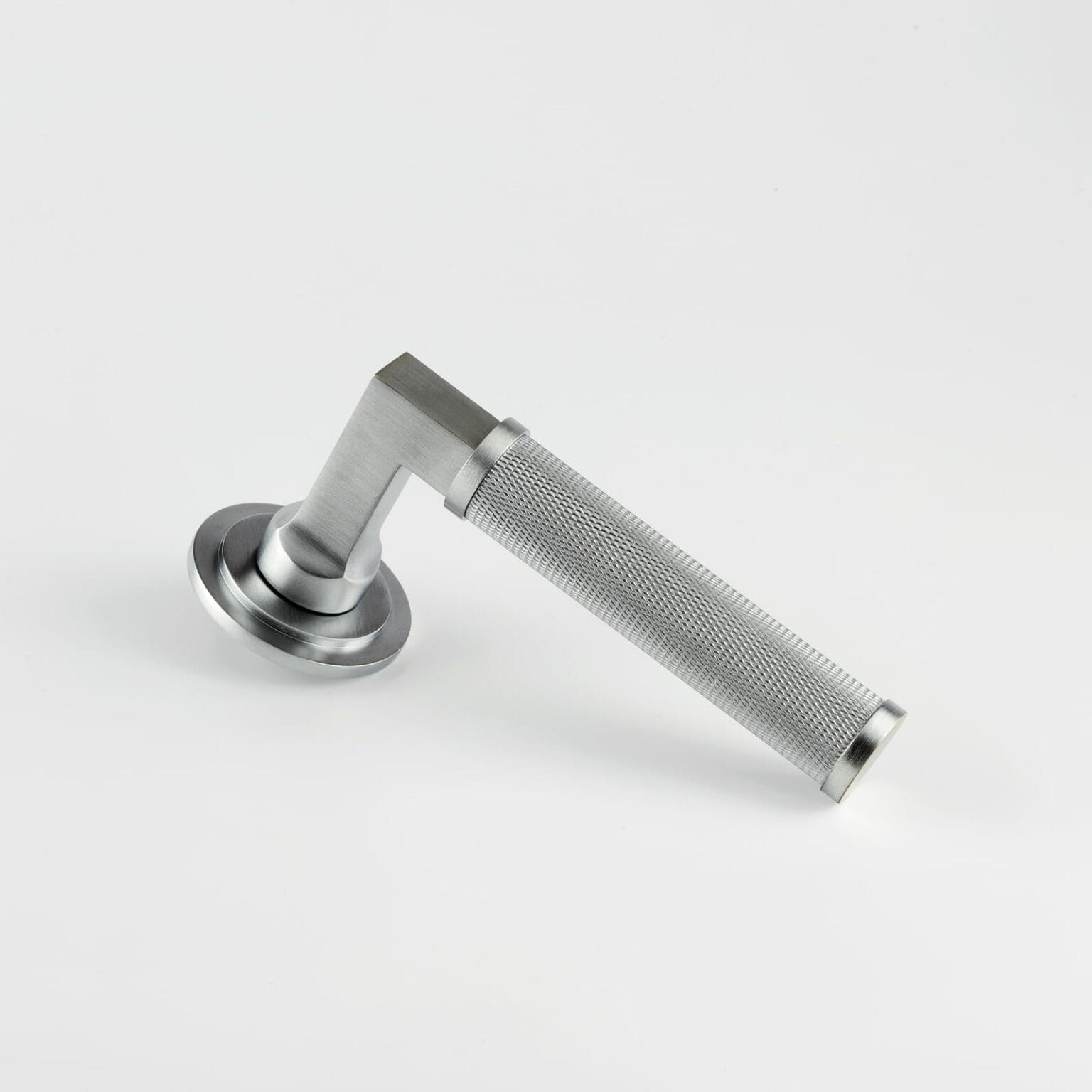 Bauhaus-themed lever on rose with the knurled handle section, solid brass material