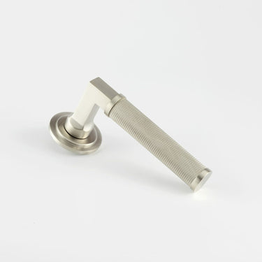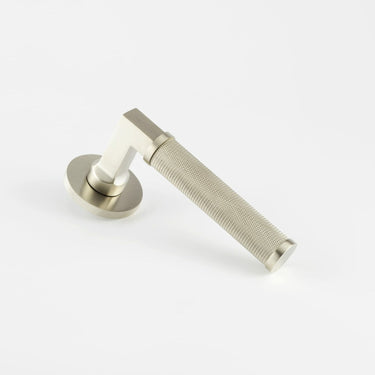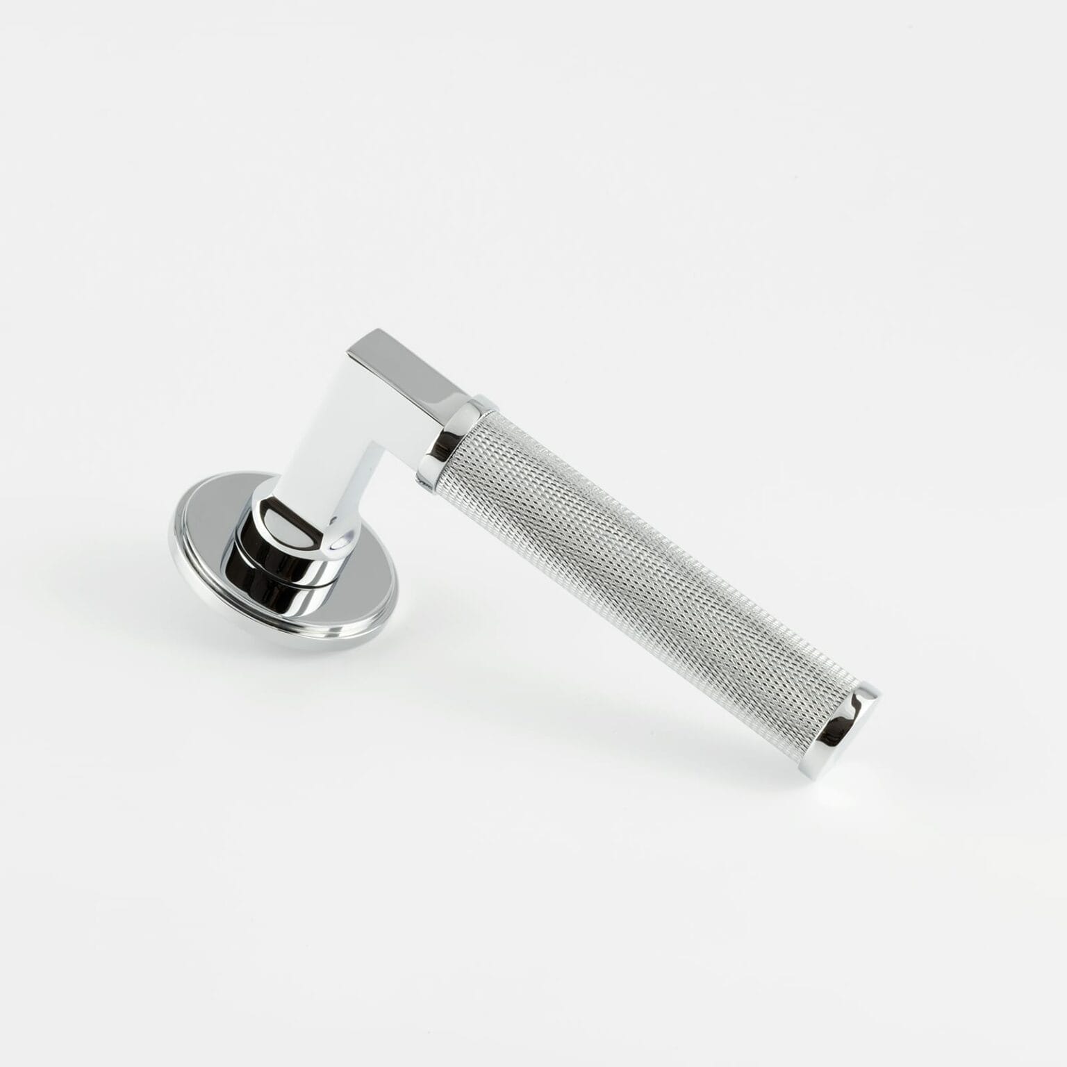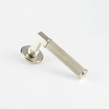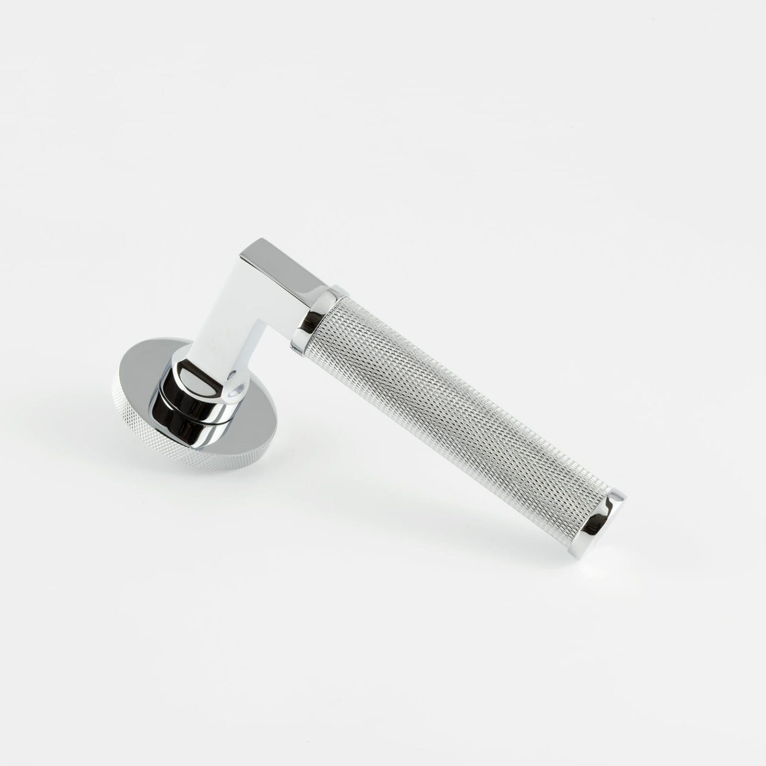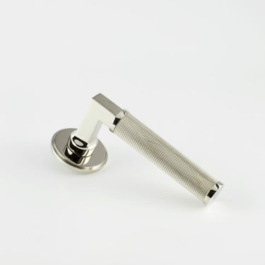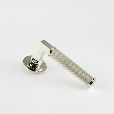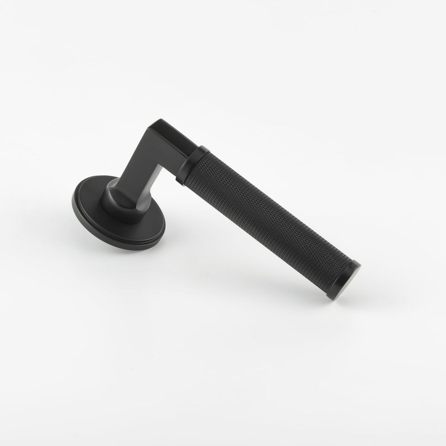 Bauhaus-themed lever on rose with the knurled handle section, solid brass material