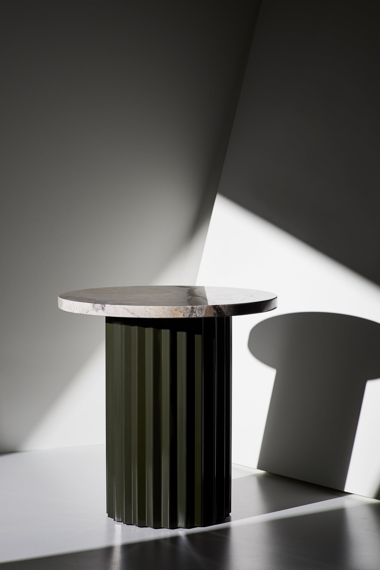 Inspired by the grand columns from ancient architecture that carries the weight of structures above the column table represents the essence of strength. As a symbol of power and magnitude the column table is made of strong steel and solid fine marble. The Column Table is a sculptural praise of the human strength.