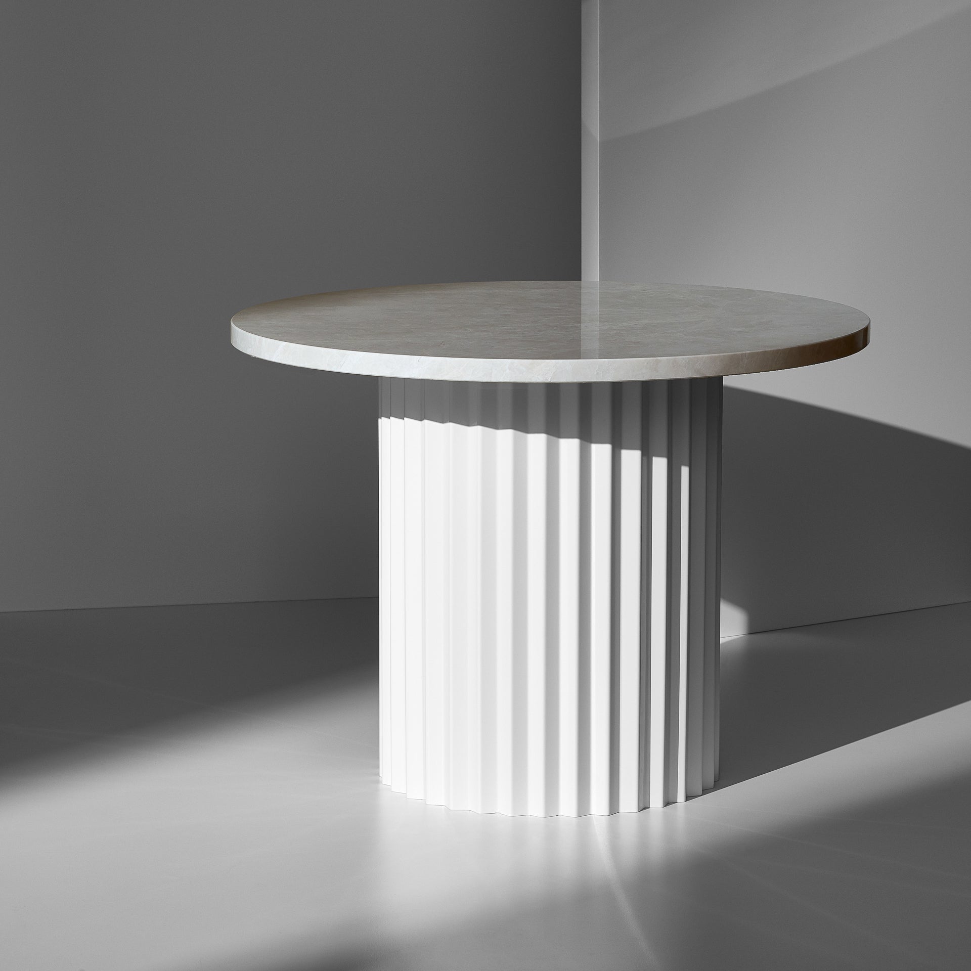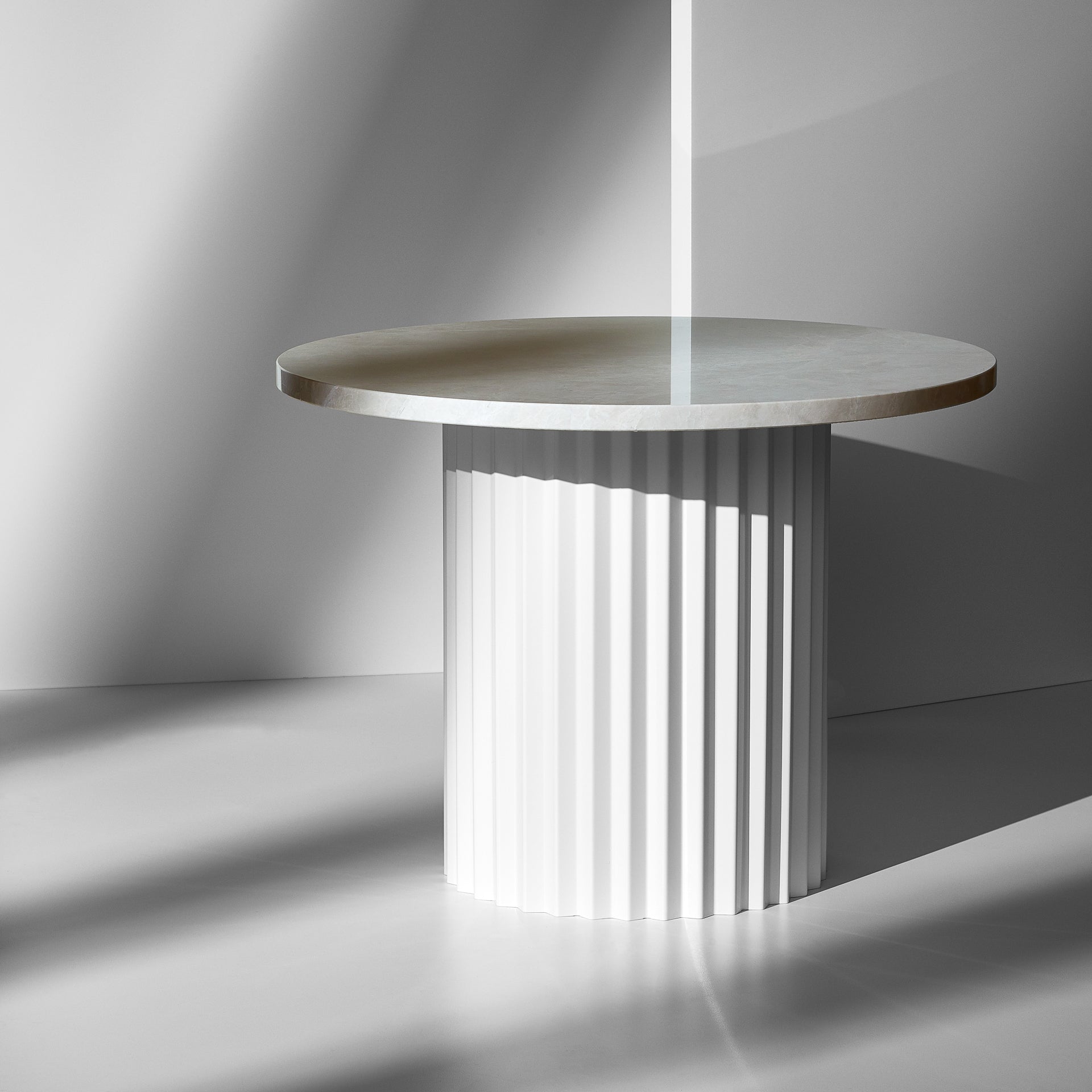 Inspired by the grand columns from ancient architecture that carries the weight of structures above the column table represents the essence of strength. As a symbol of power and magnitude the column table is made of strong steel and solid fine marble. The Column Table is a sculptural praise of the human strength.