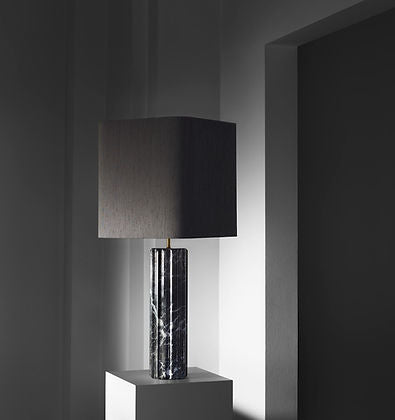 Strong materials with a hidden vulnerability. The Proud Table Lamp is made of generous forms with a solid foundation. The lampshade of silk floats as a light seductive shadow over the marble fundament. With its admirable attitude the lamp inspires to stand up straight and to be proud.