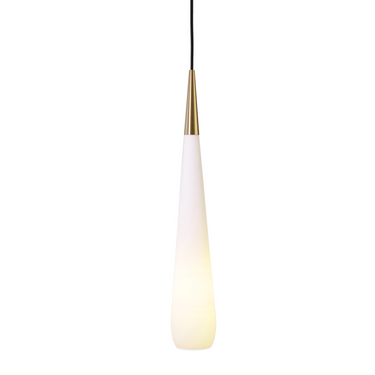 Opus 1 Pendant har en elegant, dråbeformet skærm i opalglas, der udsender et blødt og indbydende lys.