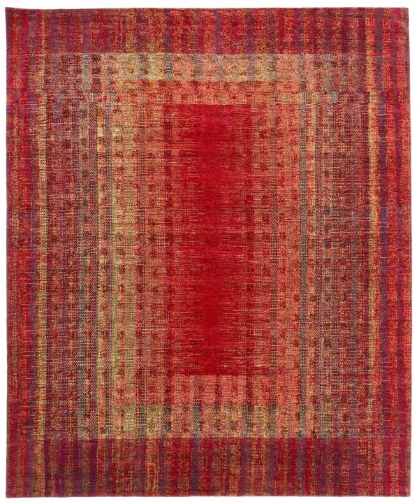 The gentle, warm color transitions of the Tessuto Frame carpet create a successful overall picture and create a design that is reminiscent of merging frames. The rather static design image is also supported by the rectangular shape of the "Tessuto Frame", which forms the outer frame for the geometric design of the piece.