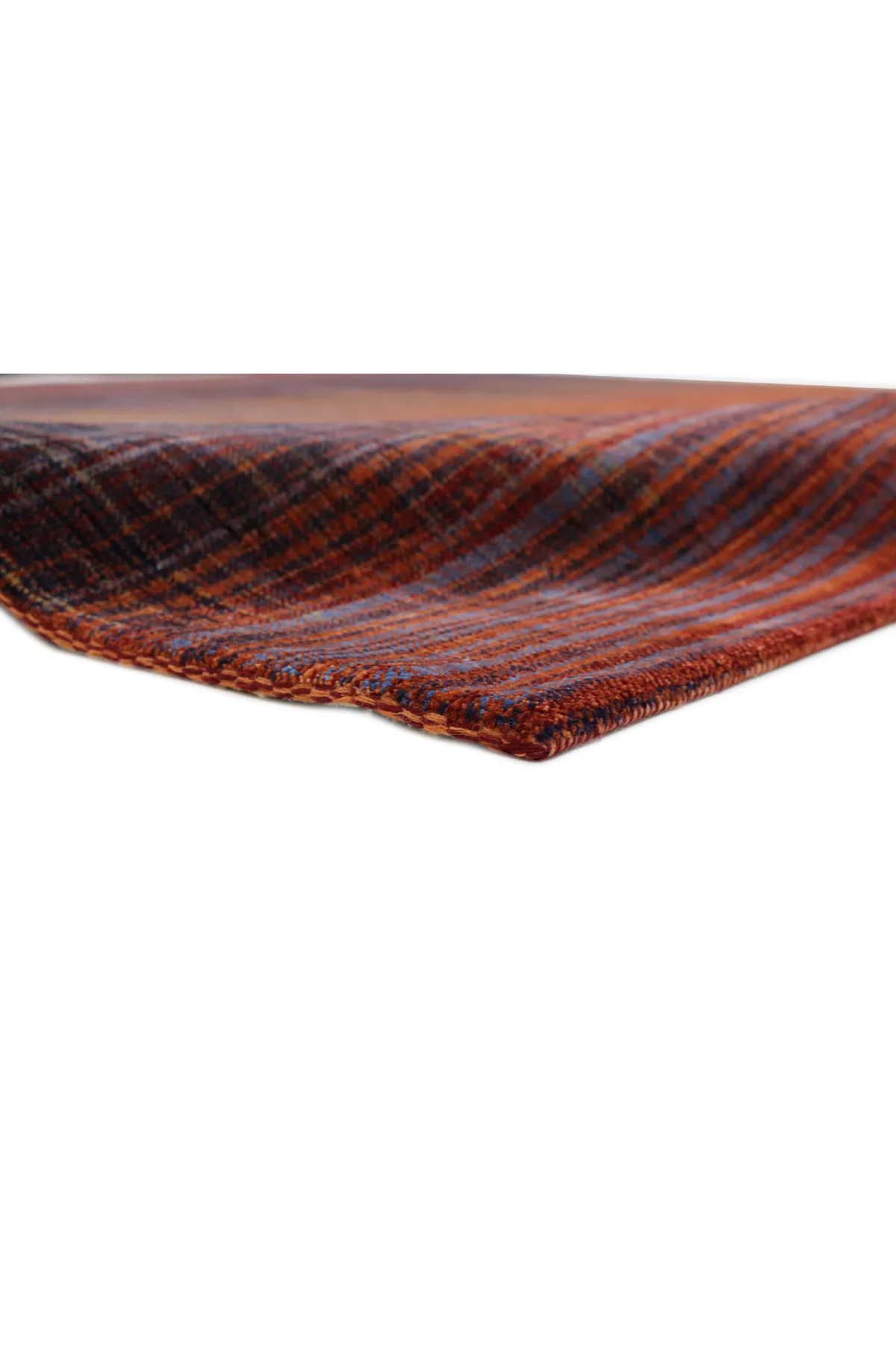The carpet, hand-knotted from unsorted Persian wool and cotton, shows an interesting clash of complementary colors. The gently blending color worlds create a harmonious overall picture and create a kind of plaid design.